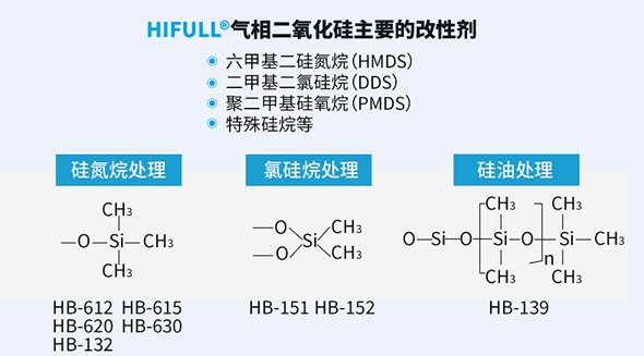 На сегодняшний день HIFULL® предлагает семь марок гидрофильного пирогенного кремнезема (HL-90/HL-150/HL-200/HL-260/HL-300/HL-380/HL-450), пять марок гидрофобного пирогенного кремнезема, обработанного гексаметилдисилазаном (HMDS) (HB-132/HB-612/HB-615/HB-620/HB-630), одну марку гидрофобного пирогенного кремнезема, обработанного полидиметилсилоксаном (PDMS) (HB-139), два вида гидрофобного пирогенного кремнезема, обработанного диметилдихлорсиланом (DDS) (HB-151/HB-152), и два вида гидрофобного пирогенного кремнезема, обработанного специальными силанами (HB-701/HB-202N).