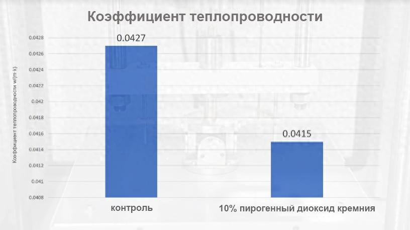 Чтобы изучить влияние газофазного диоксида кремния на теплоизоляционные свойства теплоизоляционных красок, технические специалисты компании Huifu Nano провели сравнение данных о коэффициенте теплопроводности контрольного образца и теплоизоляционной краски с добавлением 10 % газофазного диоксида кремния, что позволило выявить взаимосвязь между газофазным диоксидом кремния и теплоизоляционными свойствами краски.