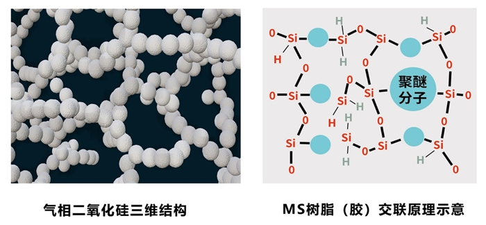 В герметиках MS, особенно прозрачных типах, гидрофильный пирогенный кремнезем, как правило, не подходит из-за высокой чувствительности системы смол MS к влажности, что создает проблемы для стабильности хранения. В настоящее время в отрасли стандартным решением является использование гидрофобного пирогенного кремнезема, причем конкретные гидрофобные типы выбираются в соответствии с требованиями клиентов. HIFULL® предлагает три основные категории гидрофобных продуктов, обработанных силазанами, хлорсиланами и полисилоксанами, а также специально обработанные силановые продукты.