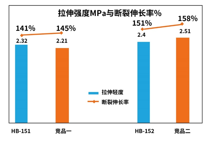 Усиливающий эффект наполнителя из кремнезема в прозрачном клее MS (прочность на разрыв и относительное удлинение при разрыве) показан на рисунке ниже:
